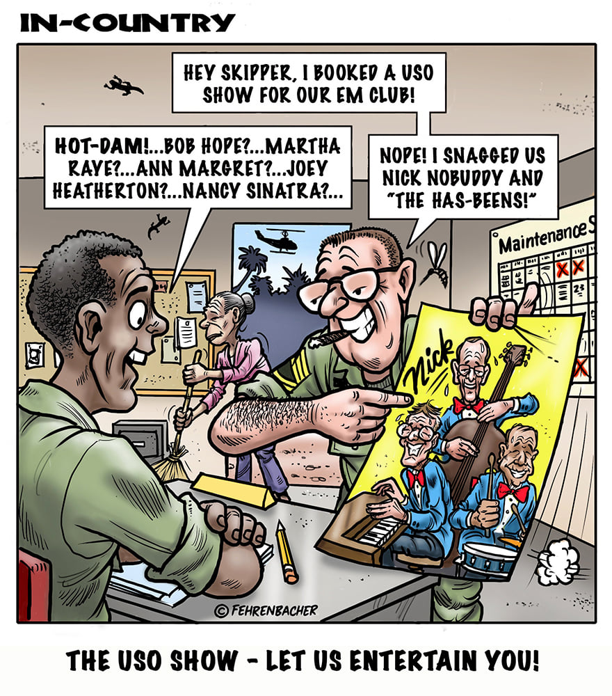 Phil enlisted in the Army in 1965 where you served for years in Vietnam. He became a graphic designer and has worked for the state of Oregon for 26 years. He retired in 2003 and started the Cartoon "In-Country". The cartoons reflect his experiences during his tour of duty in South Vietnam.